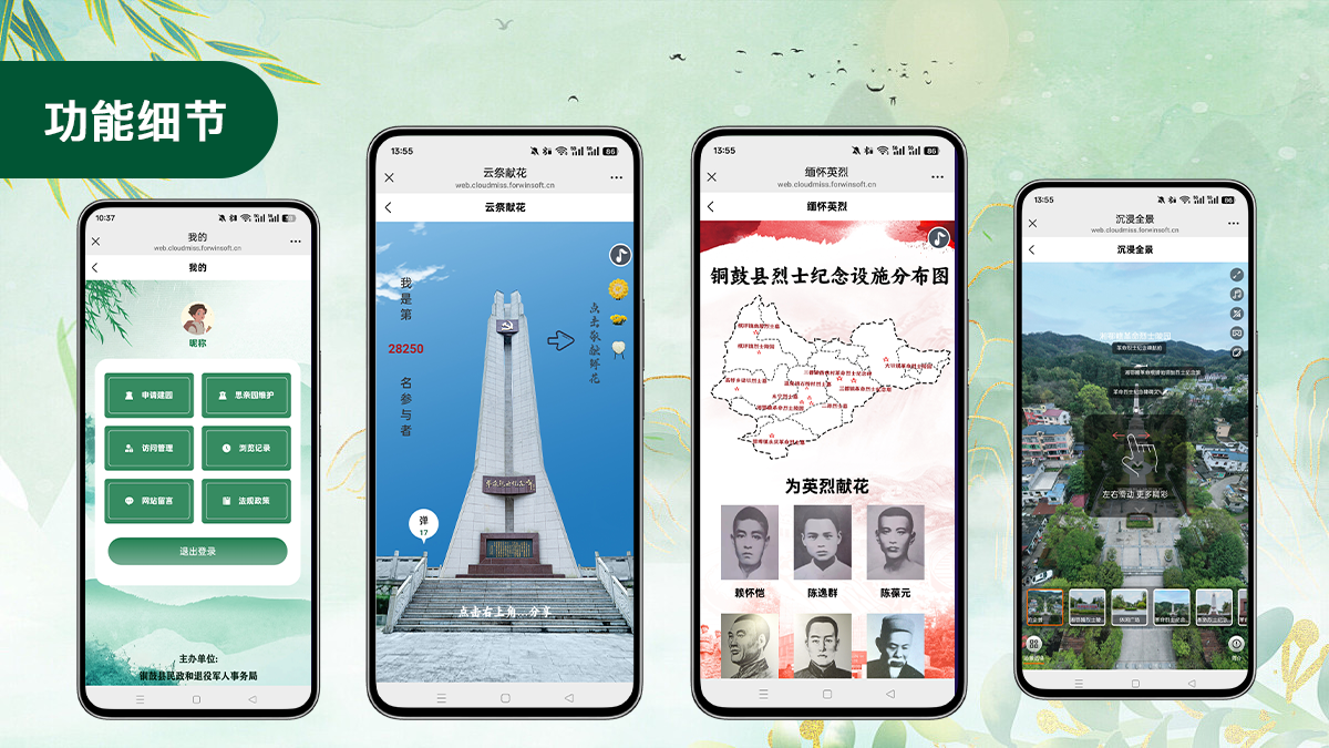 - 缅怀英烈:专门针对英烈纪念的板块,可在线缅怀英烈、查看英烈事迹、参与英烈纪念活动。