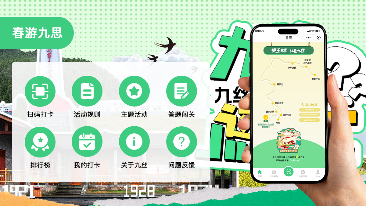 河南讯业信息科技有限公司为红色文旅场景打造的 “春游九思” 小程序,以 “趣味互动 + 文化传播” 为核心,助力九丝地区盘活红色旅游资源,实现文旅体验与品牌传播的双重升级。