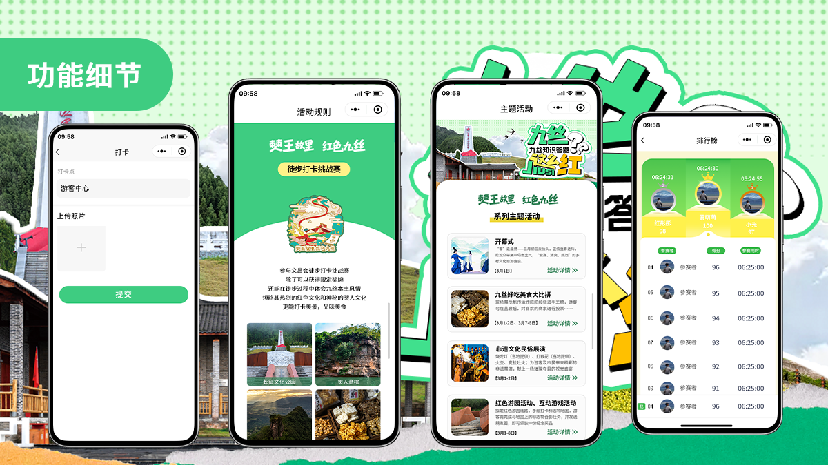 • 活动规则 / 关于九丝:清晰展示景区活动详情、文化背景,降低游客信息获取成本,强化 “红色九丝” 的品牌认知。