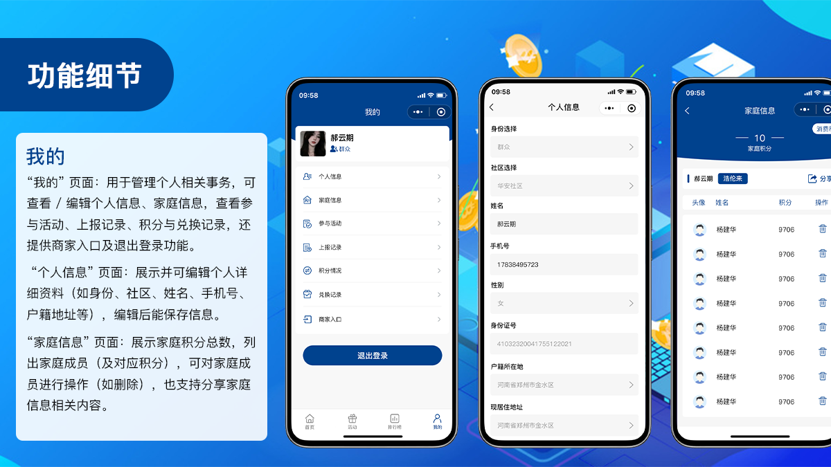 7. 家庭信息:管理家庭成员的相关信息,便于关联家庭社保、信用等业务。
