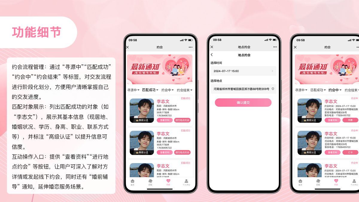- 婚姻状态认证:验证用户当前婚姻状况,杜绝虚假信息,营造诚信交友环境。