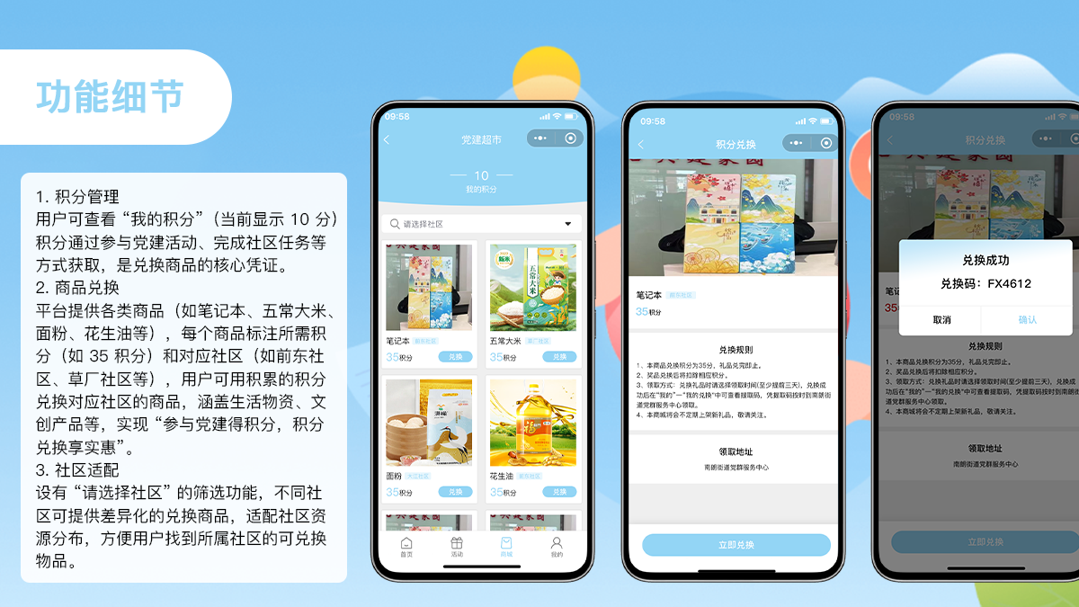 支持物资捐赠、爱心募捐、困难帮扶等慈善类活动,实现线上发起、线下执行、全程透明化管理,助力社会关爱落地生根。 - 党建超市