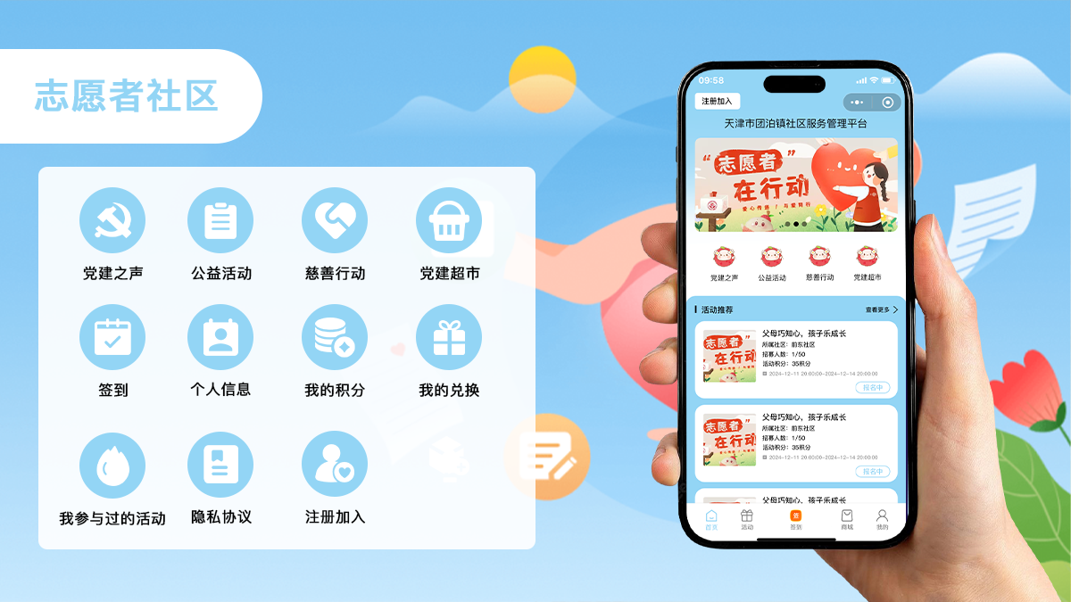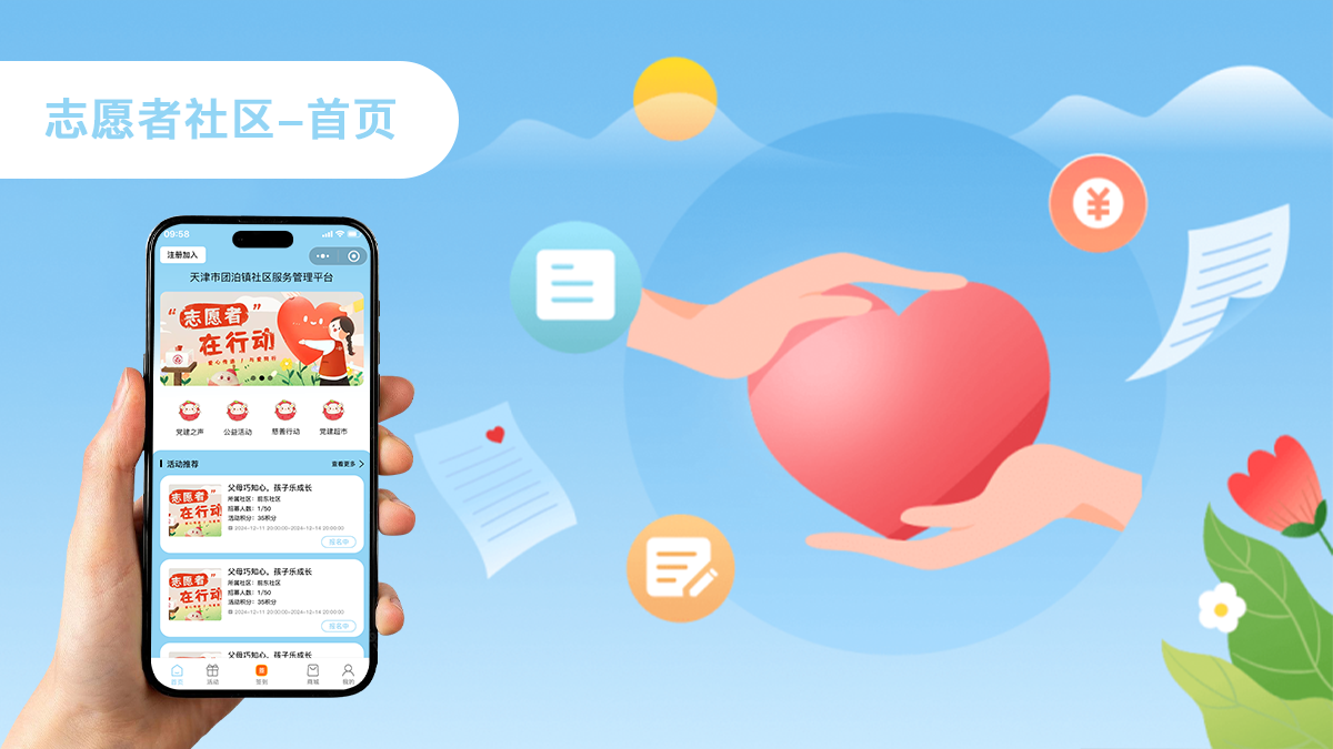 “志愿者社区”是一款由基层政府或街道党工委主导建设的智慧党建与志愿服务一体化管理平台,致力于打造集“党建引领、志愿参与、服务记录、积分激励”于一体的数字化社区治理工具。该平台以“党心连民心,志愿暖社区”为核心理念,面向广大党员群众、社区居民和公益组织,提供便捷高效的志愿服务参与渠道。