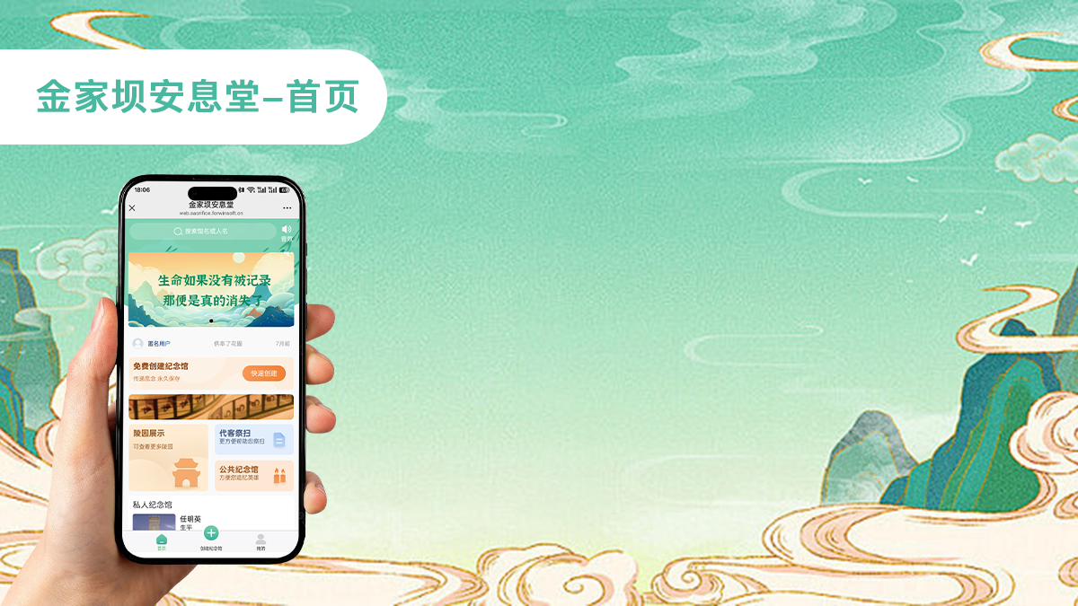 “金家坝安息堂”是一款专为殡葬服务与生命纪念打造的数字化智慧祭扫平台,旨在通过移动互联网技术,构建一个集“线上纪念、远程祭扫、信息留存、情感寄托”于一体的现代化殡葬服务体系。平台以“生命如果没有被记录,那便是真的消失了”为核心理念,致力于让每一个生命的尊严与记忆得以长久保存和传承。