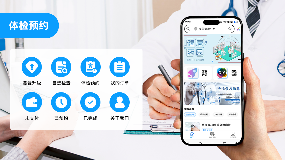 “体检预约”不仅是一个订体检的工具,更是一个推动主动健康管理、预防医学普及和医疗资源优化配置的重要载体,助力实现“从治病到防病”的健康转型。