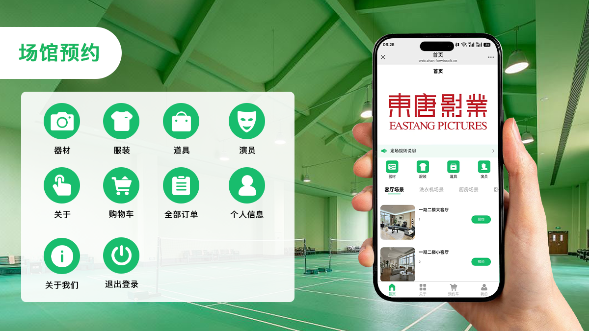 “场馆预约”是一款专为影视拍摄、广告制作、短视频创作及各类商业活动打造的一站式场地与资源预订平台。该平台由“东唐影业(EASTANG PICTURES)”推出,整合旗下多个实景拍摄基地的优质场景资源,涵盖客厅、厨房、洗衣房、办公室、酒店大堂等多样化生活化场景,满足影视剧组、广告公司、自媒体团队、品牌方等用户的高效选景与快速预订需求。