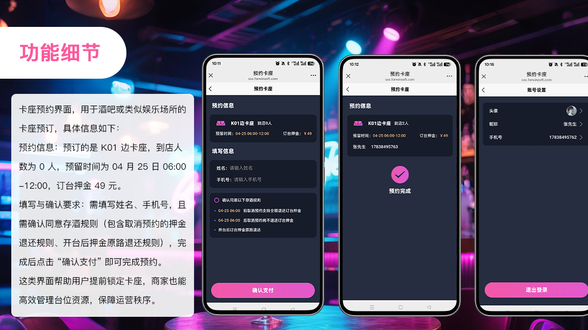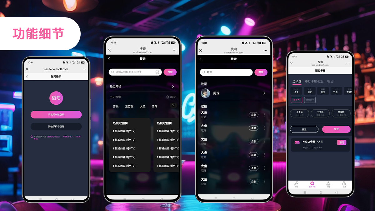 - 告别排队等待:无需找服务员,手机一点即可完成点歌、点餐、预约,节省时间,提升体验。