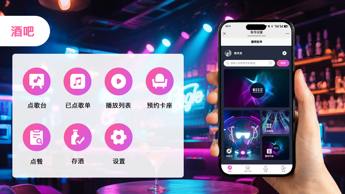 “酒吧”是一款专为现代夜生活场景打造的小程序提供从点歌、点餐、存酒、卡座预约服务,实现便捷夜生活。