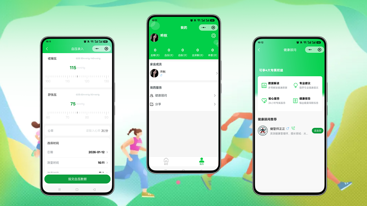 一款专注于家庭健康指标管理的轻量化工具类小程序,支持家庭成员体重、血压、血糖、血脂、血尿酸等核心健康指标的录入、存储、智能判定与趋势分析,帮助用户实时掌握家人健康状况,为家庭健康管理提供数据支撑。
