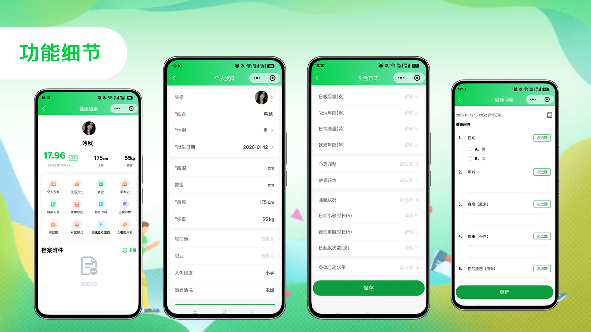便捷录入家庭成员多项健康指标,建立完整的家庭健康数据档案