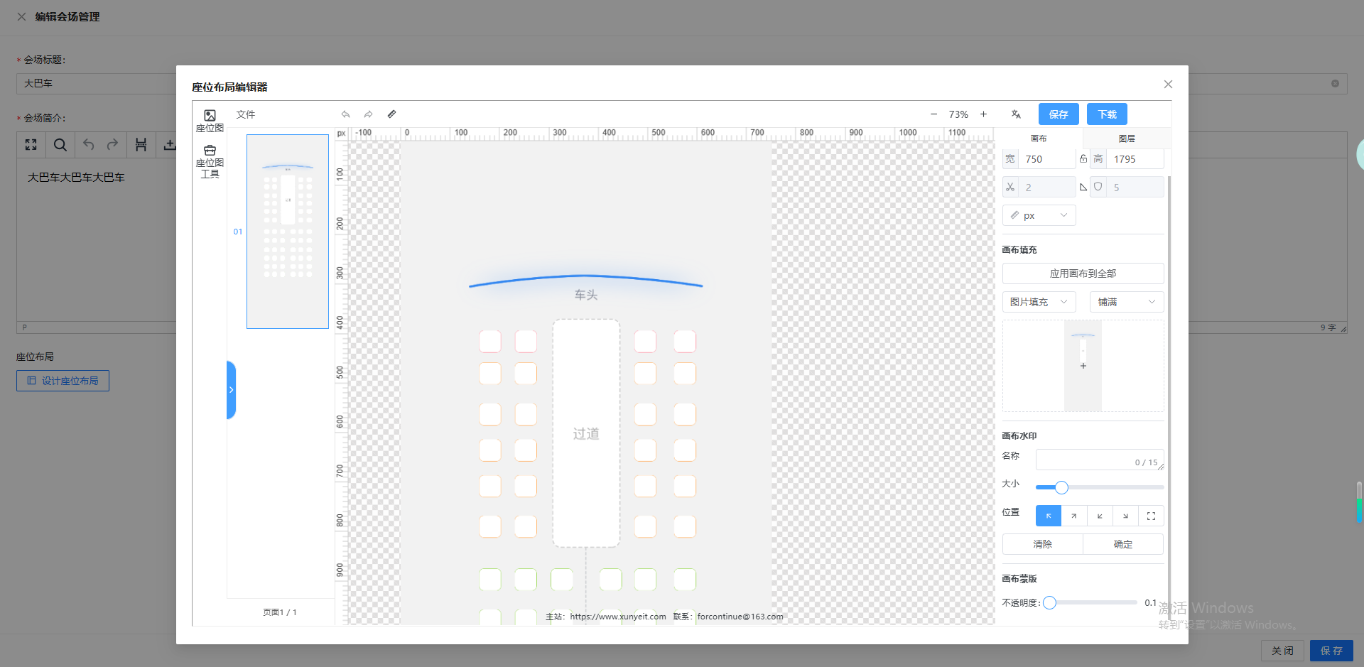 • 底图适配:以会场实景图(如剧院内部场景)作为画布底图,让座位布局与实际场地视觉对应,提升布局的真实匹配度;